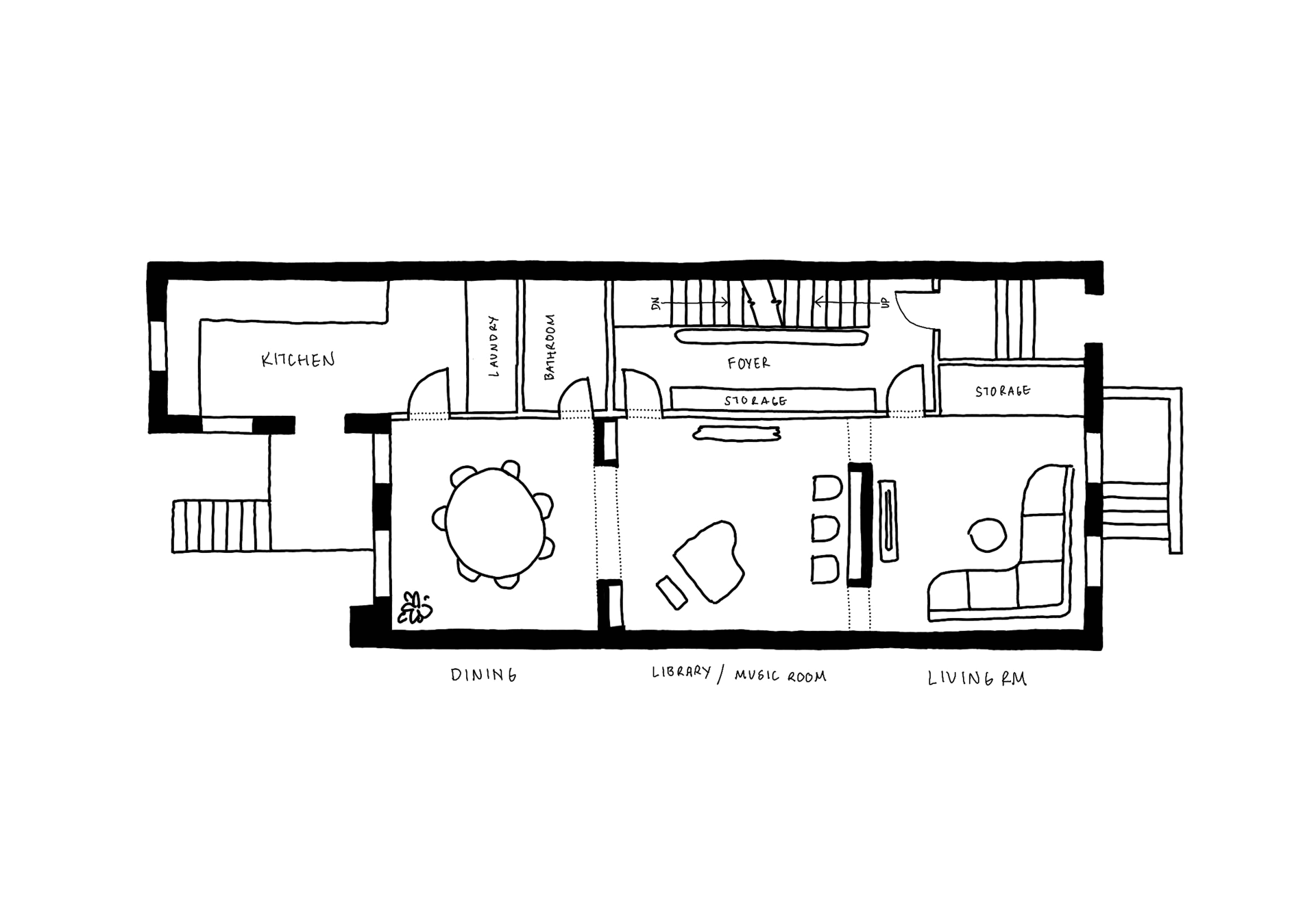 This project reimagines the traditional enfilade concept to create adaptable and engaging spaces for a couple seeking a long-term, age-in-place living solution within the first floor of their townhouse. By thickening the walls to form portal-like separations, the design maintains visual continuity while offering optimized storage and display for cherished memories and belongings. This flexible approach allows for the transformation of spaces over time, ensuring the home evolves with the couple's changing needs. A living room, for example, can seamlessly transition into a bedroom as circumstances require.